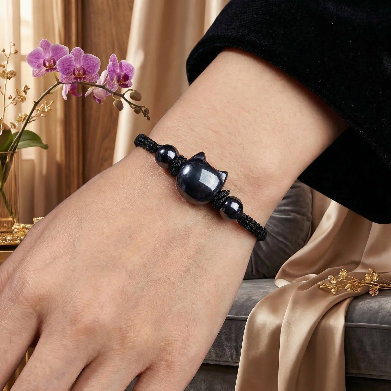 Money Attraction Cat Bracelet - Perfect Gifts For Women (Obsidian)